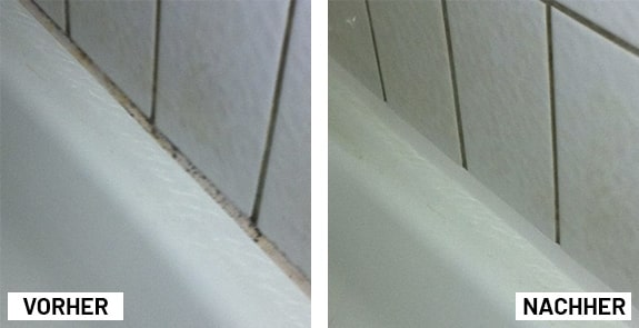 Auf Grund hoher Luftfeuchtigkeit in den Nasszellen bildet sich mit der Zeit ein Pilz in Form von dunklen Flecken auf der Dichtmasse. Aus ästhetischen und hygienischen Gründen sollte man diese Abdichtungen ersetzen.